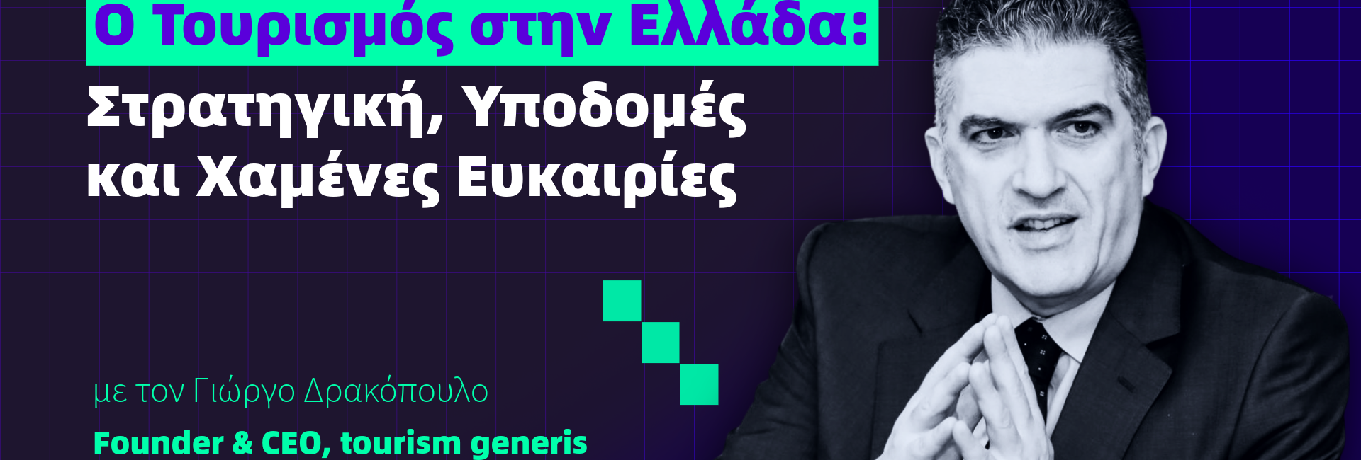 Η συζήτησή μας σήμερα είναι με τον Γιώργο Δρακόπουλο, έναν από τους πιο έμπειρους επαγγελματίες του ελληνικού τουρισμού. Ο Γιώργος έχει αφιερώσει δεκαετίες στον κλάδο, ταξιδεύοντας σε πάνω από 80 χώρες και συμβάλλοντας ουσιαστικά στη διαμόρφωση της τουριστικής στρατηγικής της χώρας μας. Με εμπειρία στον Παγκόσμιο Οργανισμό Τουρισμού και το ΣΕΤΕ, ο Γιώργος έχει βαθιά κατανόηση του πώς ο τουρισμός μετεξελίχθηκε από μια ρομαντική δραστηριότητα σε έναν από τους πυλώνες της ελληνικής οικονομίας.